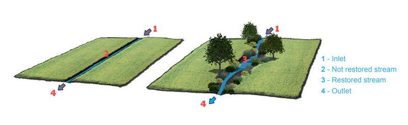 River restoration involves manipulating an existing watercourse channel and its features to re-naturalise, restore, and improve a stream/river by reinstating natural processes.